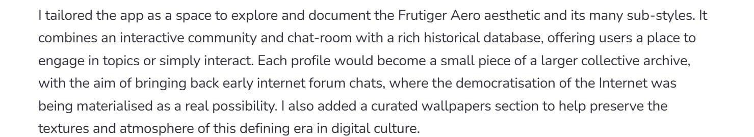 Explore my work and join me in shaping a Solarpunk future through design. Frutiger Aero - UI Concept 28 Oct 2025 2 min read Thank you for scrolling! ๐ฌหห๐ขเป ๐โงห.๐โ